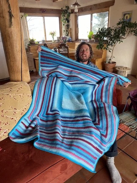 For 30 years I sat with it. With him. With blankets. With guns and flesh. And now Silke, who really is the love of my life, a soul mate extraordinaire, taught me to crochet. And I love it. I love the work. I love the feeling of my hands, and even my mind as it wraps itself around the contours of these threads and knots.